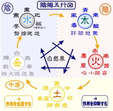 臓器の機能を5つに分類する「五行論」と、体内の成分を3つに分類する「気血水論」の2つは相互に作用しています。(たとえば、「気」を入れるのは「肝」で、その「気」を全身にくまなく配るのが「腎」だと考えられています。)