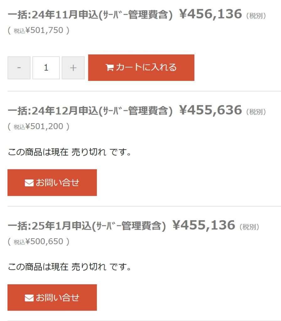 - 画像のように購入する時期により価格が異なります。