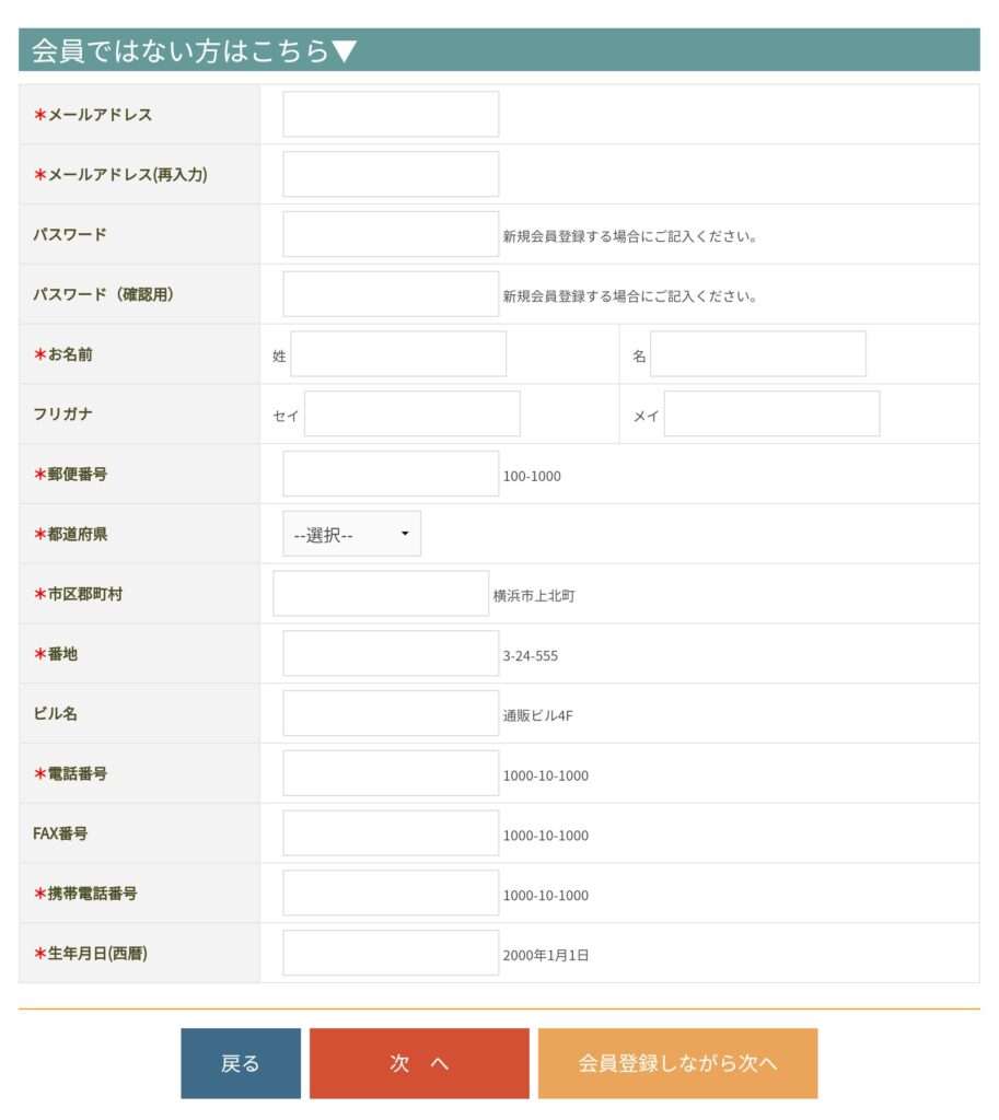 - 配送先がお客様情報と同じ場合は、そのままにしておきます。