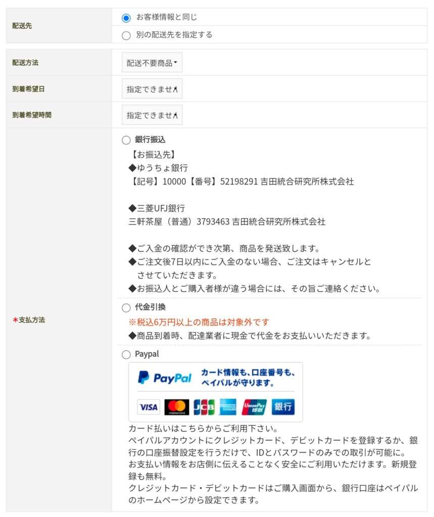 - [払込方法]により商品を選択する